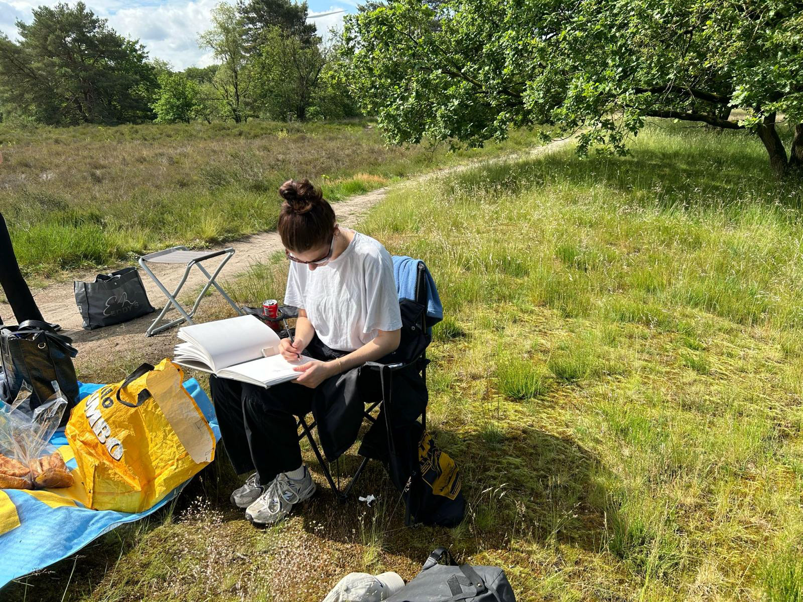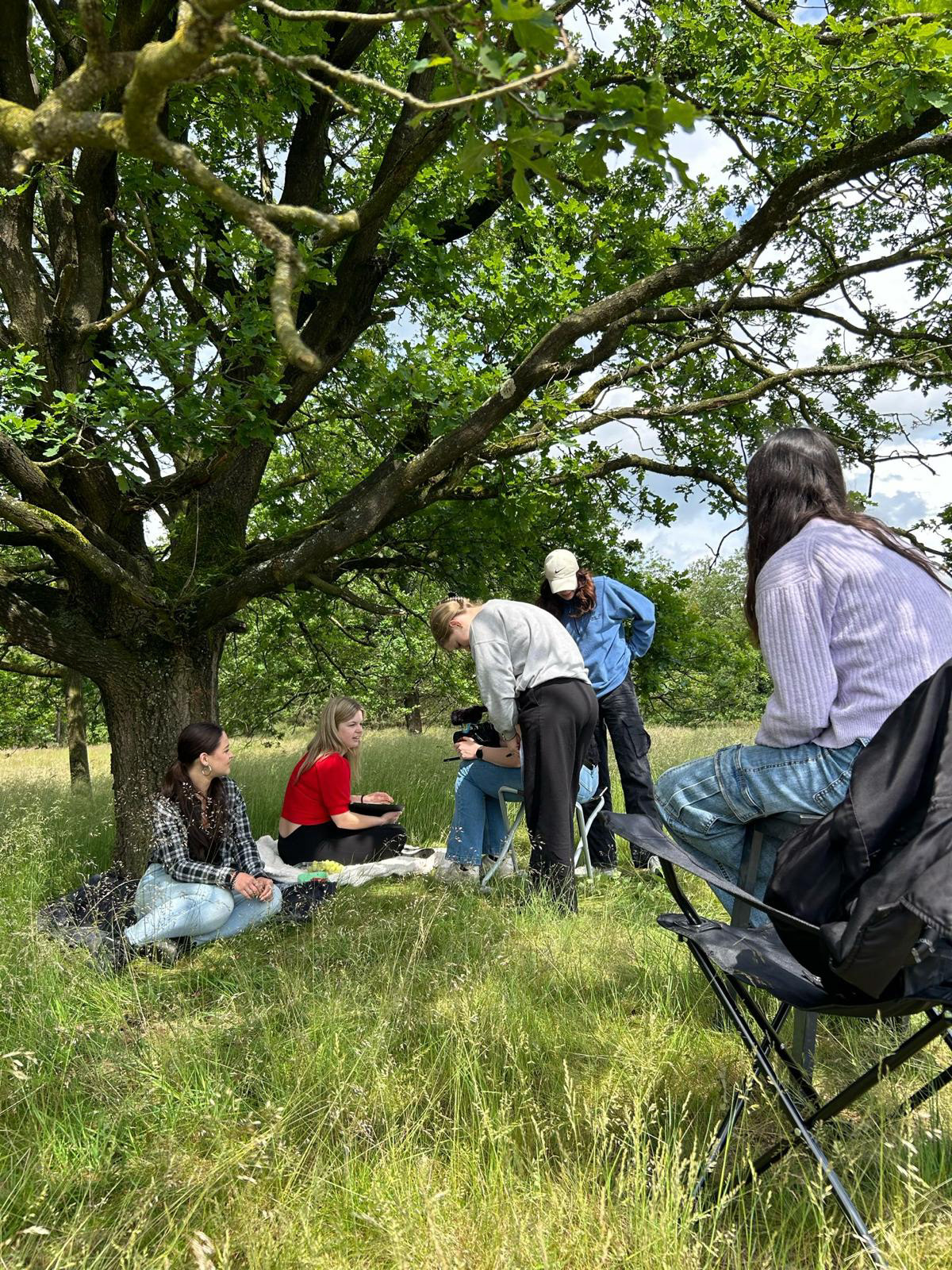 We have expressed these differences in direction in physical images, which is why we have opted for minimal text and subtle visual language. The tree in the middle symbolizes the strong, deep friendship between the two. The girls sit with their backs to each other and both look in different directions, showing their differences in direction. They are also never both in the same shot when they are talking, which we did for clarity. During filming, we focused mainly on the image layout. When Femke talks, she is on the left side of the image. When Kirsten talks, she is on the right side of the image.